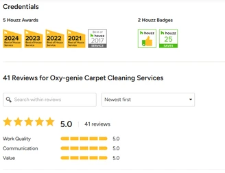As of Feb 19, 2026: HomeStars 5/5 (35 reviews), Houzz 5.0 (41 reviews), TrustIndex 5.0 (696 reviews)